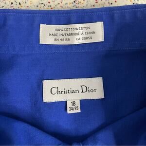 Vintage Christian Dior Men’s Button Down Dress Shirt Blue Size 18 34/35