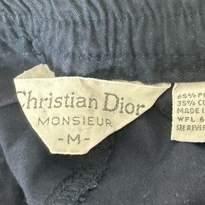 Vintage Christian Dior Men's Navy Pants. Poly blend, made in Macau. Wasit - 30 with elastic at rest, inseam - 31.