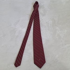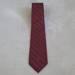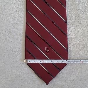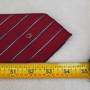 Vintage Christian Dior Men's Necktie Red Navy White Regimental Stripe Short Tie