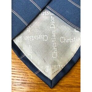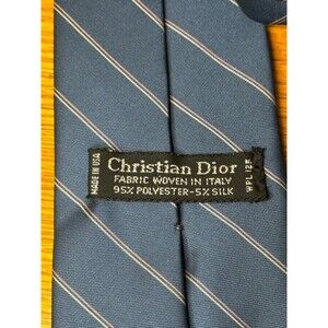 Elevate your formal look with this vintage Christian Dior men's neck tie. Made in the USA, this tie features a classic width and a stylish striped pattern in shades of blue. Crafted from a luxurious blend of polyester and silk, this tie exudes sophistication and elegance. Perfect for any occasion, this designer tie is a must-have for any fashion-conscious man. The brand's iconic logo adds a touch of authenticity to the piece, making it a great addition to any collection. Whether you're dressing up for a formal event or adding a touch of polish to your everyday look, this Christian Dior neck tie is sure to impress.