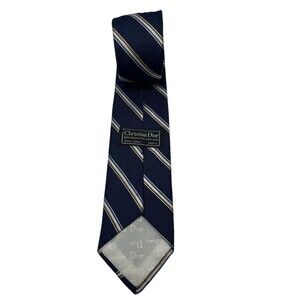 Vintage Christian Dior Men’s Striped Tie 35% Silk Embroidered Logo