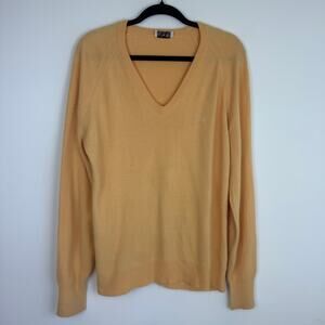 Vintage Christian Dior Mens V-Neck Yellow Knit Acrylic Long Sleeve Sweater XL