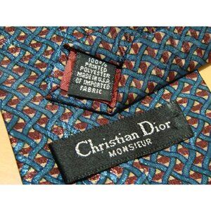 Vintage Christian Dior Monsieur Blue Burgundy Gold Neck Pointed Designer Tie. Brand: Christian Dior. Department: Men. Color: Blue, Burgundy, Gold. Type: Long Neck/Suit Tie. Material: 100% Polyester - Imported Fabric. Pattern: Geometric Shapes. Condition: Pre-Owned, In Good Condition. Measurement are in photos and are approximate:Item Width: 6 in. Item Length: 28 in (tie is folded in half for this measurement) total length of tie is 56". No flaws - been in storage will need a slight cleaning with a reputable dry cleaner in your area. No rips, tears or stains. See measurements in photos. Smoke free and Pet free home.