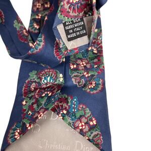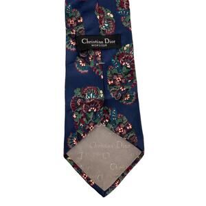 Vintage Christian Dior Monsieur Blue Floral Silk Neck Tie