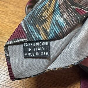 Vintage Christian Dior Monsieur Leaf Patterned Burgundy Gold Blue Neck Tie