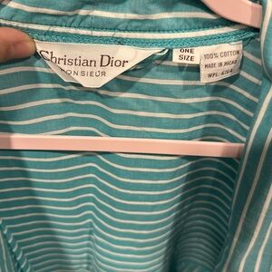 Vintage Christian Dior Monsieur Men’s Cotton Striped Robe Blue & White One Size