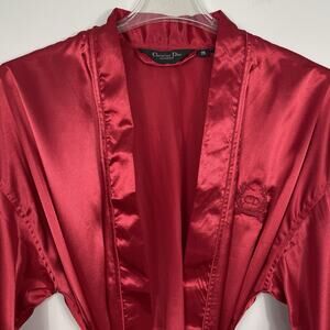 Vintage Christian Dior Monsieur Satin Robe Men’s One Size Red Satin CD Monogram