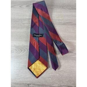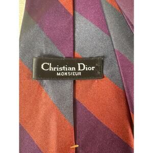 Vintage Christian Dior Monsieur Silk Tie- Burgundy, Plum Gray Diagonal Stripped