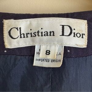 Vintage Christian Dior Navy Blue Polka Dot Gold Button Suit Jacket Size 8