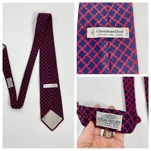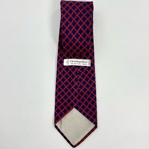 Vintage Christian Dior Navy Blue and Red Knit Power Old Money Quiet Luxury Neck Tie. Very classic french fashion vintage neck tie. No flaws and in excellent condition.