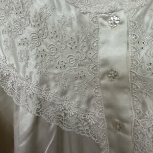 Vintage Christian Dior Nightgown Maxi Length Lace Trim Button Front Floral Cream