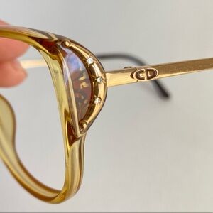 Vintage Christian Dior Oversized Glasses Eyeglass Frames 60s 70s Golden Retro Rhinestone Yellow Butterscotch Style 2810 Made In Austria