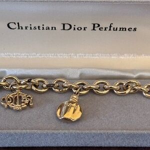 Vintage Christian Dior Perfumes Dune Charm Bracelet 7.5” Gold Plated