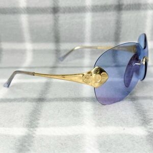 Vintage Christian Dior Pilot Sunglasses 50V 120 Oversized Gold Blue Lens Rimless