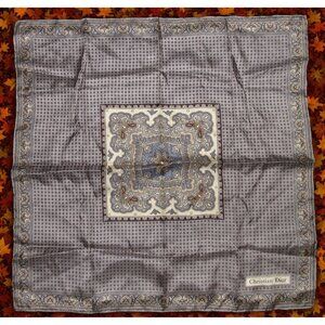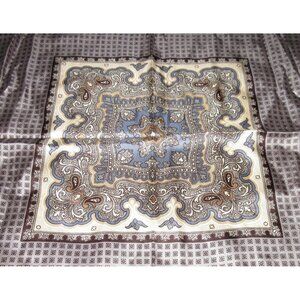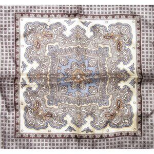 Vintage Christian Dior Silk Scarf Handkerchief Paisley Geometric Brown Blue 18"
