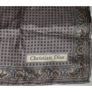 This vintage Christian Dior silk scarf features a paisley geometric design in brown and blue. A timeless accessory, it adds elegance to any outfit. Perfect for collectors or fashion enthusiasts seeking a touch of luxury and sophistication.
