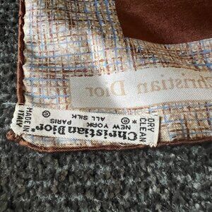 Vintage Christian Dior Silk Scarf Handkerchief - Square 18x18 inches Brown