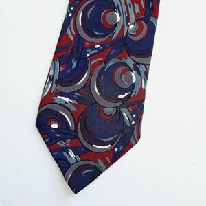 Vintage Christian Dior Silk Tie Blue Red Abstract Bold Maximalist Luxury Italy