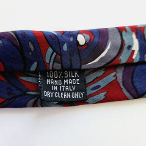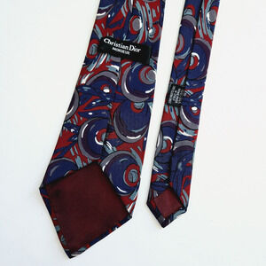 Vintage Christian Dior Silk Tie Red Blue Abstract Bold Maximalist Luxury Italy