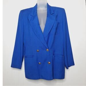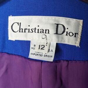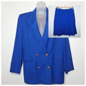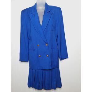 Vintage Christian Dior Skirt Suit Women's 12 (Fits Medium) Pleated Double Breasted Cobalt Blue