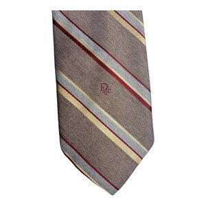 Vintage Christian Dior Striped Silk Tie Gray W/ Burgundy & Blue Accents
