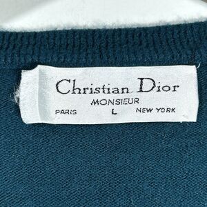 Vintage Christian Dior Sweater Orlon Acrylic V Neck Blue USA Made Mens L