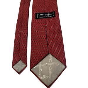 Vintage Christian Dior Vintage Geometric Design Silk Tie Red Preowned