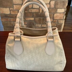 Vintage Christian Dior White Beige Trotter Tote Leather Hand Bag