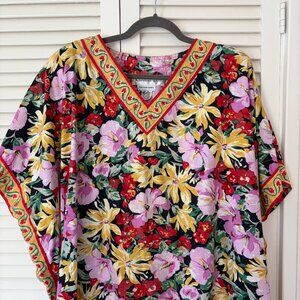 Vintage Christian Dior caftan one size floral bold cotton v-neck pullover
