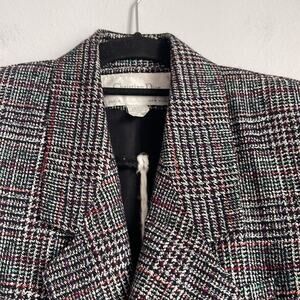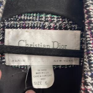 Vintage Christian Dior wool plaid tweed pleated skirt double breasted blazer suit sz 6; has a hole in the sleeve and several small holes in the lining; SEE PICS