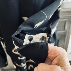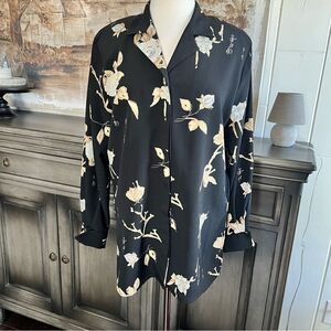 Vintage Christie & Jill Asian Buttoned Down Black Floral Blouse size Lg Grande