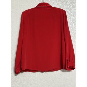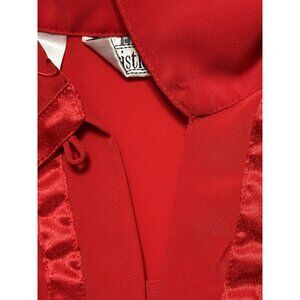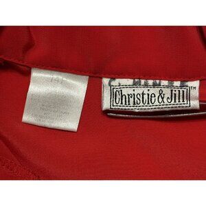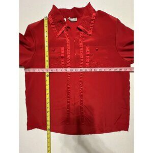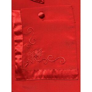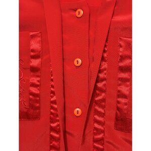 Vintage Christie & Jill Red Button Up Blouse Satin Trim Embroidered Petite 14P