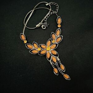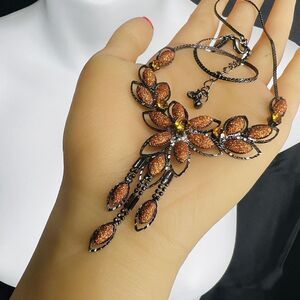 Vintage Christina Collection Necklace Bib Rhinestone Copper Tone Gold Dust 1559
