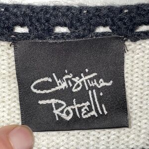 Keywords and Style Keywords: Christina Rotelli sweater, vintage cardigan, floral appliqué sweater, checkerboard cardigan, 90s style knit, retro cotton sweater, bold statement cardigan, black and white check pattern, short sleeve knit top, artsy vintage sweater