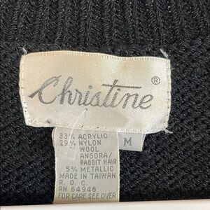 Vintage Christine Black & White Fuzzy Knit Cardigan, Beaded Button Size M