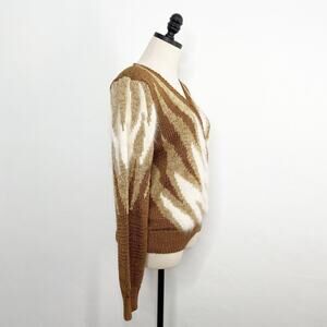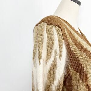Vintage Christine Geometric Design Sweater Brown Cream Angora 80s Work Size S