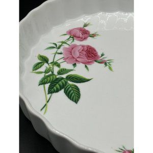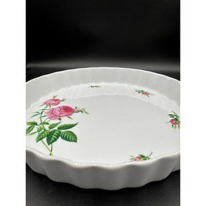 Vintage Christine Holm Ceramic Quiche Tart Plate Pan Roses Floral Pie 9.5"
