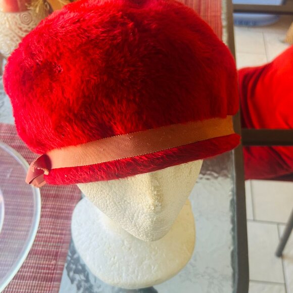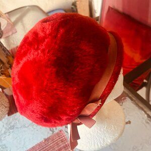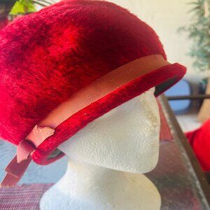 Vintage Christine Original Red Faux Fur Women's Hat with bow .