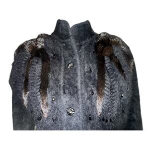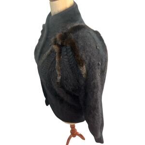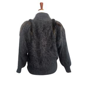 This cozy vintage angora cardigan from Christine Phillipe brings luxe softness and sculptural style to your wardrobe. The rich black knit with braided detailing and faux fur accents delivers warm, elegant insulation with texture and personality.