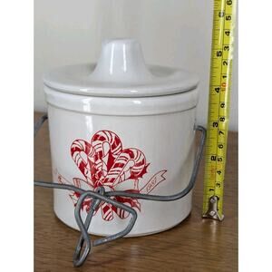 Vintage Christmas 1987 Cheese Crock Stoneware With Lid & Wire Bale Handle