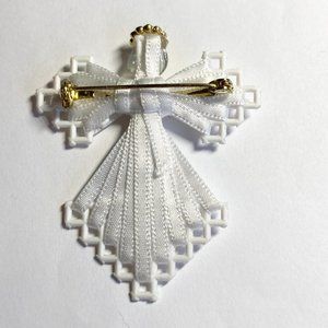 Vintage Christmas Angel Pin Brooch White Ribbon Handmade Halo Wings