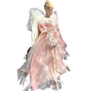 Vintage Christmas Angel Tree Topper Muave Pink Victorian Feather Wings Holiday