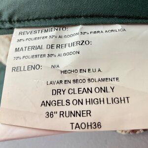 Elegant and festive table runner featuring angel design with green backing. Ideal for holiday décor or gifting purposes. Very good condition