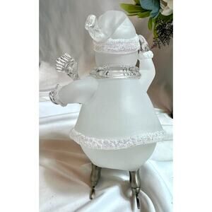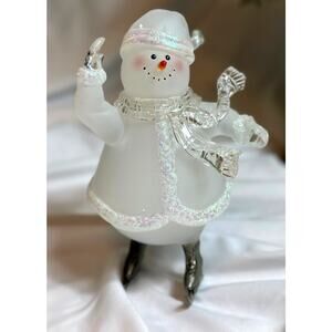 Skating Snow Man Scarf Frosted Glass Figurine Christmas Holiday Iridescent Trims