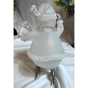 Vintage Christmas Around the World Skating Snowman Frosted Glass