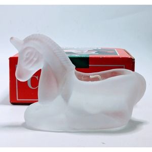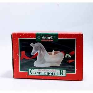 Vintage Christmas Avenue Frosted Glass Unicorn Votive Candle Holder Unlit