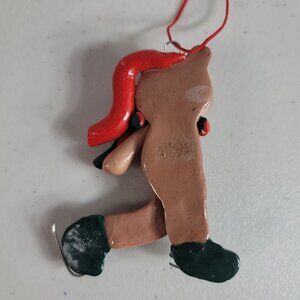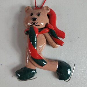 Vintage Christmas Bear Hanging Ornament Brown 3" Ice Skating Glossy Scarf