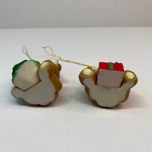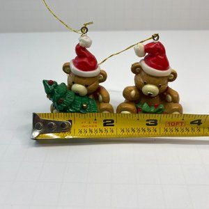 Vintage Christmas Brown Bears with Gift and Christmas Tree Ornaments Set of 2. Made of Resin.