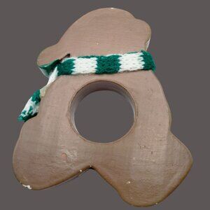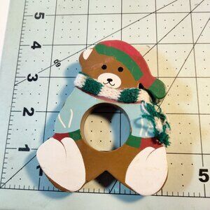 Vintage Christmas Bear Wood Napkin Ring Holder