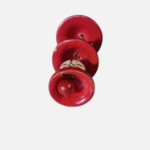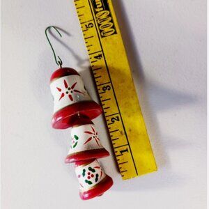 Vintage Christmas Bell Ornament Triple Bells Nested Hand Painted Wood Taiwan